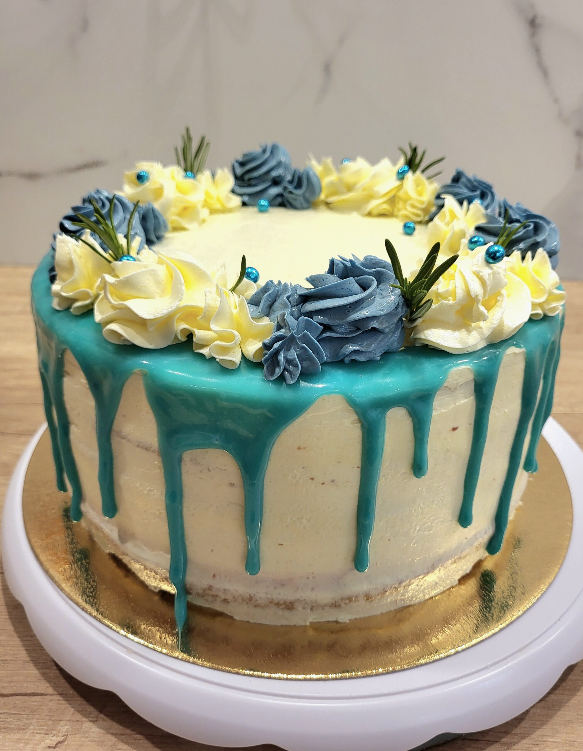 Hele biskviit, vaarikavõie, valge šokolaadi-hapukoore mousse, kaunistuseks besee-võikreem ja hooajalised marjad.